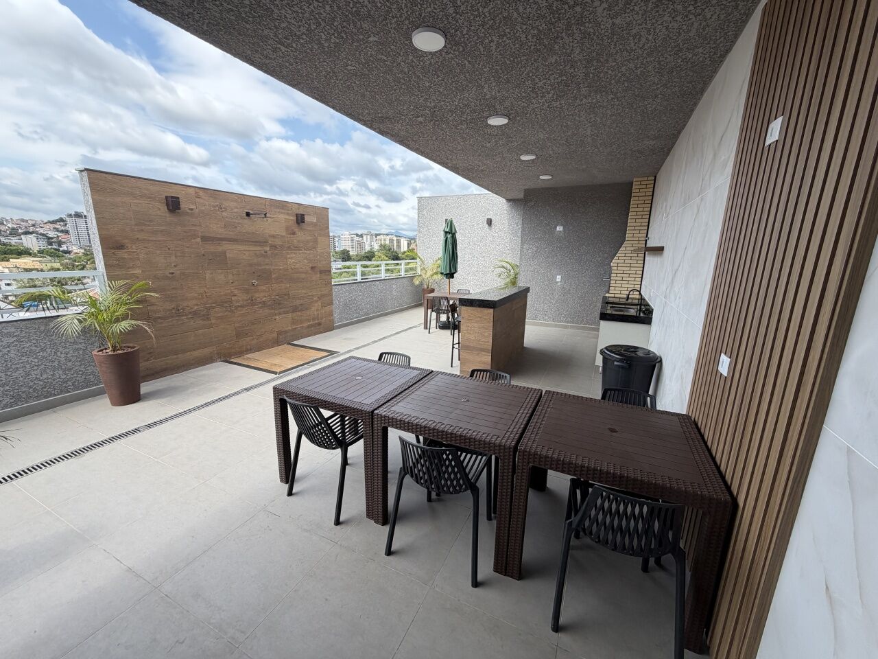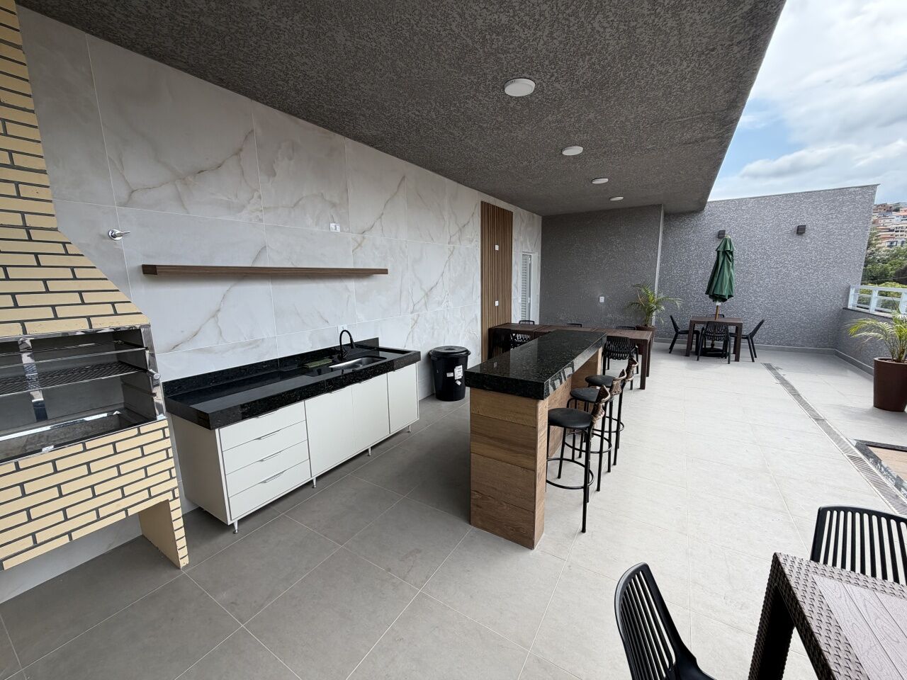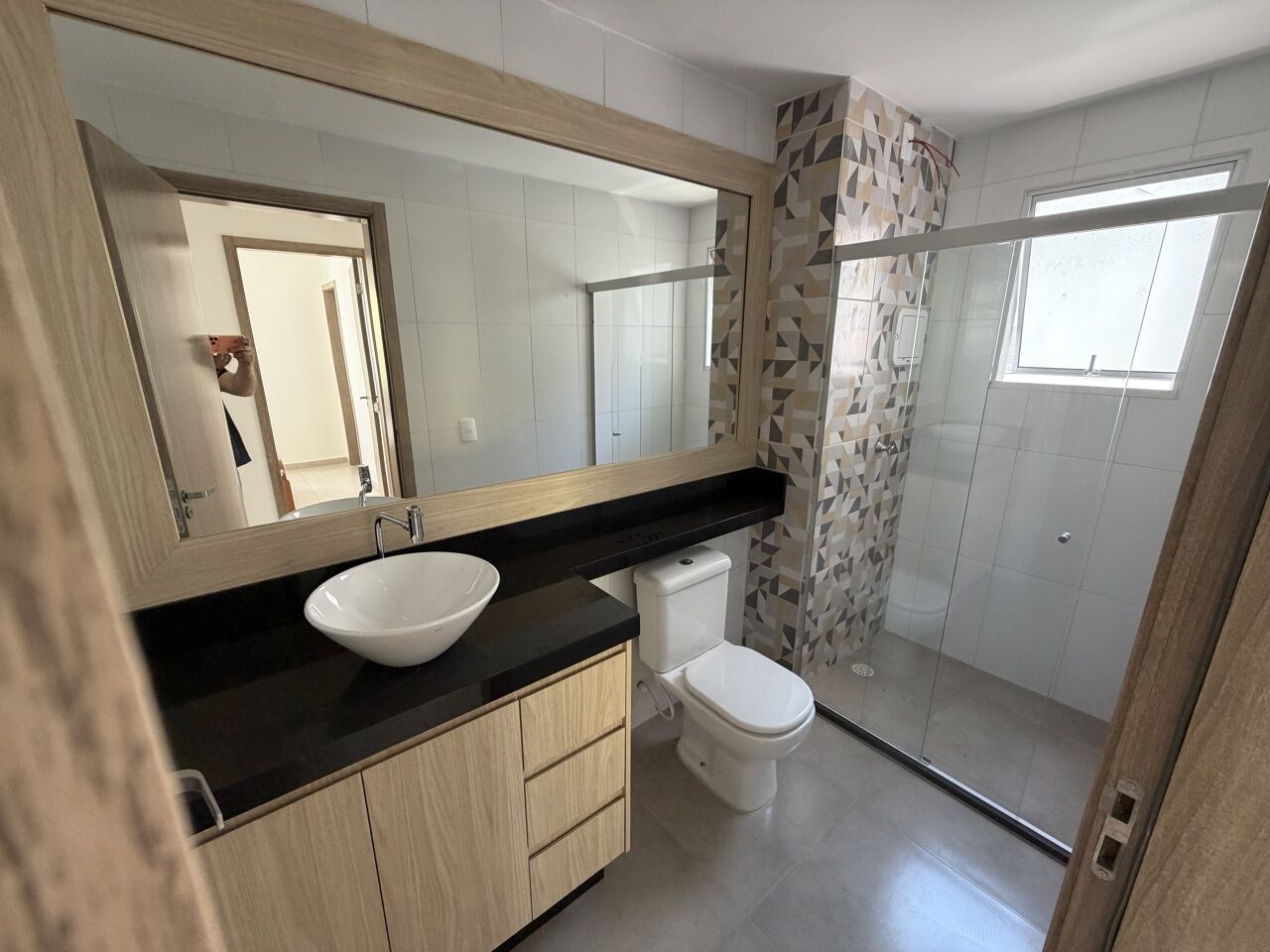 São dois quartos, sendo uma suíte, sala em dois ambientes, cozinha americana que integra os espaços com modernidade, banheiro social e uma varanda que traz luz natural e ventilação para o dia a dia.