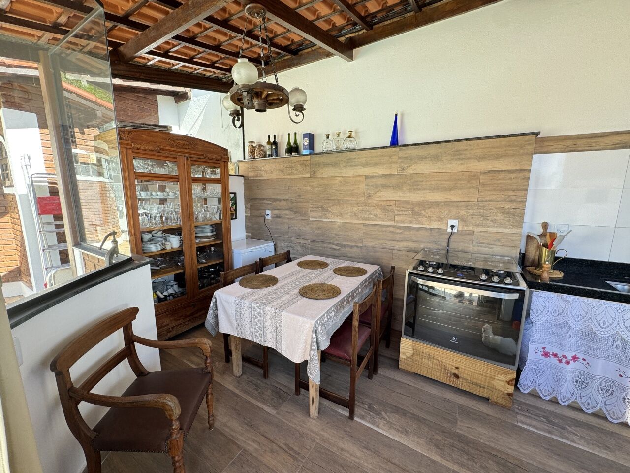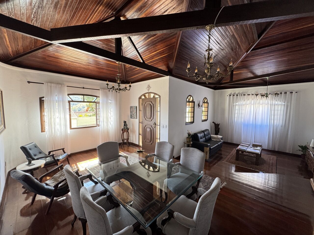 Encante-se com esta casa colonial, onde cada detalhe revela aconchego e autenticidade. O piso de madeira e os tetos com acabamento em madeira criam uma atmosfera acolhedora e elegante, remetendo ao estilo clássico das verdadeiras casas de campo.