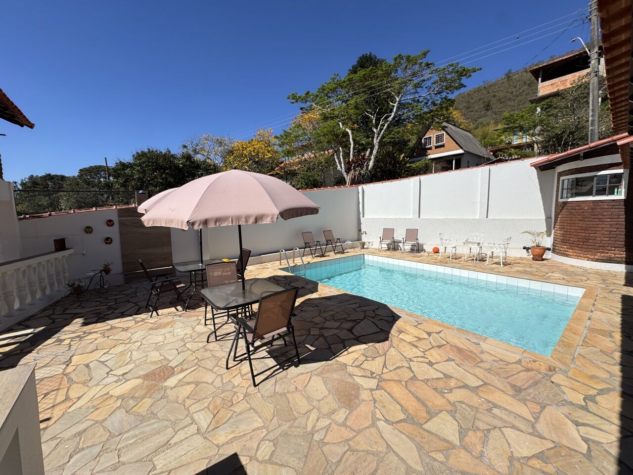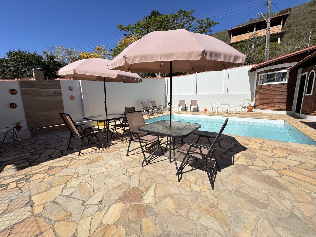 A área externa é um verdadeiro refúgio: piscina, área gourmet perfeita para reunir família e amigos, duas vagas de garagem, e um entorno com muito verde, sol abundante e vista deslumbrante para as montanhas.